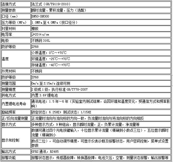 三、GPRS遠(yuǎn)傳電磁流量計技術(shù)參數(shù)