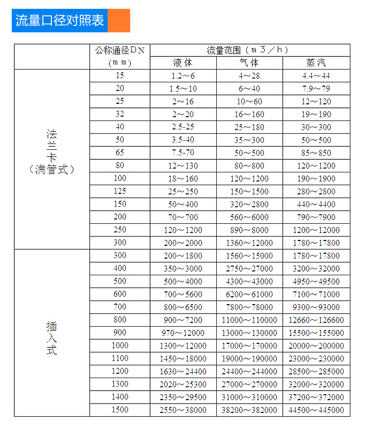 測量流速范圍:液體0.5~7m/s 氣體4~35mm/s 蒸汽7~70m/s