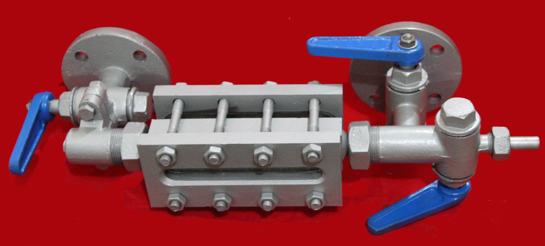 儀表的上下閥上裝有法蘭接頭,與容器連接構(gòu)聯(lián)通器,透過玻璃板直接指示容器,液位,“夾套型”設(shè)有加熱或冷卻裝置。該裝置加熱時可用蒸氣,冷卻時可用循環(huán)水,這樣可以調(diào)節(jié)流動性能,夾套型接管尺寸ZG1/4內(nèi)螺紋。