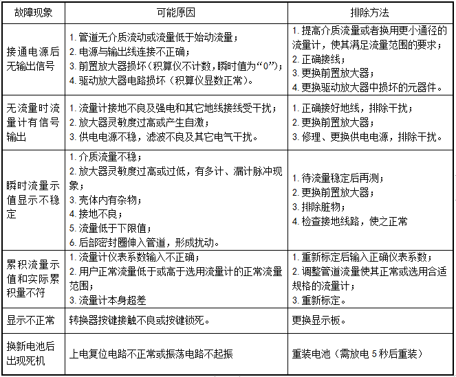 五、旋進(jìn)旋渦流量計(jì)常見(jiàn)故障現(xiàn)象及排除方法