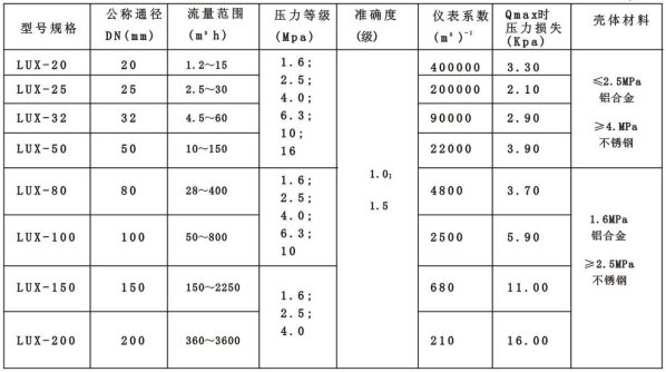 (1)當(dāng)已知被測(cè)流量為工況體積流量時(shí),可直接按表中的流量范圍選取適配的公稱通徑;