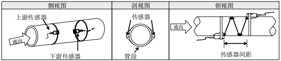 外夾式超聲波流量計(jì)裝置方式共有三種。這三種方式分別稱為V法、Z法和N法。 普通在小管徑100~300mm(4"~12")時(shí)可先選用V 法;V法測不到信號或信號質(zhì)量差時(shí)則選用Z法;管徑在 300mm(12")以上或丈量鑄鐵管時(shí)應(yīng)優(yōu)先選用Z法。