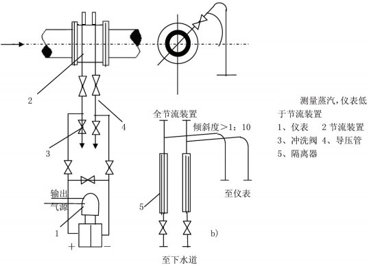 丈量蒸汽流量時,設(shè)備方法一般為差壓變送器低于、高于節(jié)省設(shè)備兩種。取壓口方位應附合上述設(shè)備要求,并在導壓控制高點處裝上放氣閥和氣體收集器。