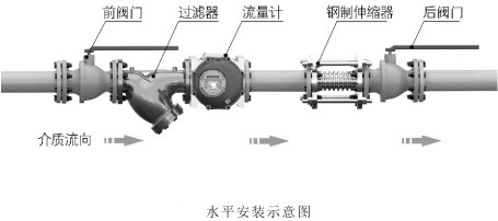 裝置時,在流量計上游必需配置過濾器或者過濾網(wǎng)(120-200目),以改善介質(zhì)的純真度。